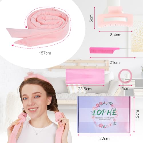 LOPHE Bigodino, Bigodini Lungo Senza Calore Bigodino con Pettine a Coda, Velluto Bigoodino Set Morbidi per Dormire, Fascia Bigodino Capelli Strumento per Lo Styling Dei Fai-Da-Te(Rosa)
