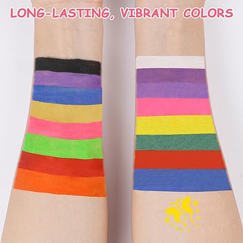 【Qualità E Sicurezza】 Pittura del viso è conforme agli standard FDA, EN71 e ha superato i test di laboratorio CE e SDS, 100% non tossica, ipoallergenica, adatta a qualsiasi tipo di pelle. Si consiglia un test cutaneo su piccola area prima dell'uso.