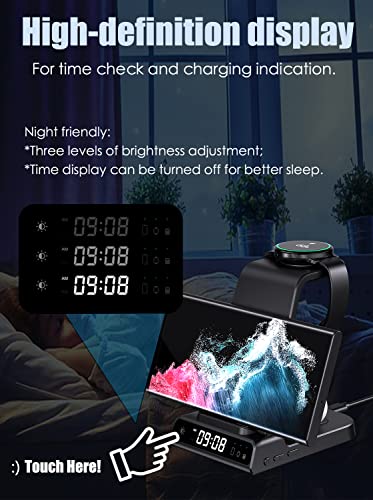 【Ricarica sicura e veloce】Ricarica wireless 3 in 1 aggiornata Lopnord con orologio progettato per utenti Samsung, caricabatterie wireless con l'ultima combinazione di orologio digitale e caricabatterie. Carica contemporaneamente il tuo telefono/orologio Samsung/auricolari wireless, l'adattatore Quick Charge 3.0 incluso fornisce un'uscita stabile al caricabatterie wireless, non c'è bisogno di più cavi di ricarica, mantieni il tuo desktop pulito e ordinato e ti offre una vera esperienza wireless!