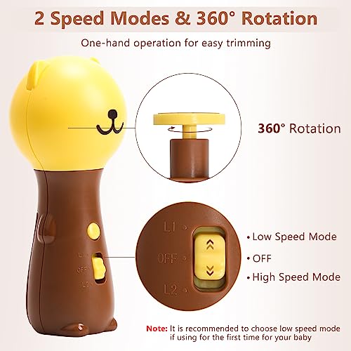 【Velocità regolabile e con design luminoso】La lima per unghie per bambini con luce frontale può garantire l'uso al buio in modo efficace, il set per la cura delle unghie elettrico è molto silenzioso (solo 35 dB) quando la cura delle unghie per bambini funziona, e la lima per unghie per bambini elettrica non sveglierà mai il vostro bambino che dorme.