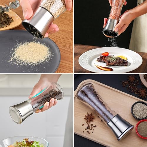MACINA PEPE DI ALTA QUALITÀ: la bottiglia del macina pepe ha un'altezza di 19 cm e un diametro di 6,5 cm, realizzata in acciaio inossidabile 304 e vetro resistente al calore, l'anima in acciaio al carbonio di alta qualità è robusta e resistente all'usura per una macinatura più agevole e un uso più duraturo rispetto ai macinini in ceramica, mantenete le vostre spezie fresche sigillando ogni macina con il tappo in acciaio incluso.