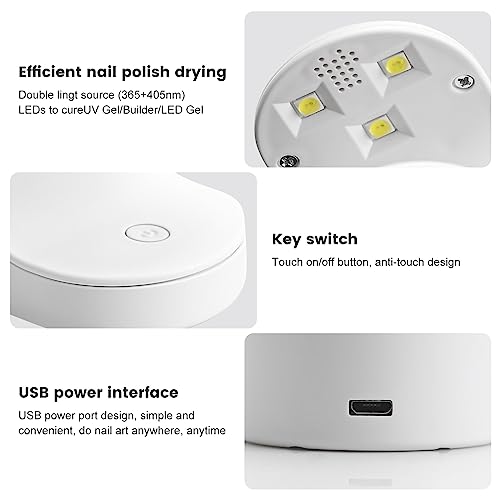 LoQuick Mini Lampada LED per Unghie UV, Lampada UV Portatile Asciugatrice per Unghie a Singolo Dito Gel Americano, Macchina Manicure con Lampada Polimerizzante Elettrica 16W e Cavo USB
