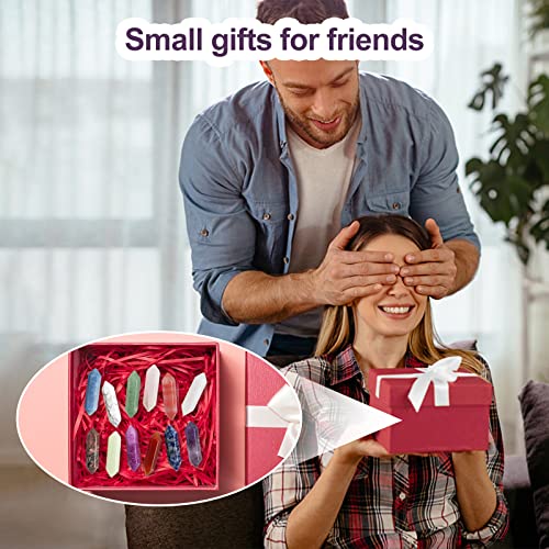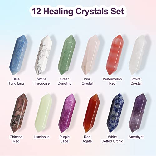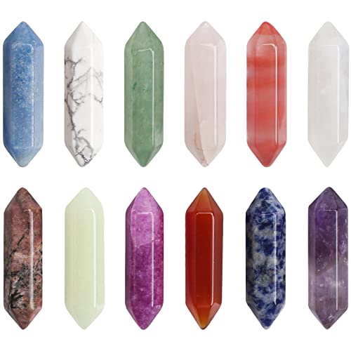 LoQuick 12 pezzi Bacchette di cristallo curative, appuntite, Regali Pietre Meditazione Yoga Lucidato Pietre preziose naturali Sollievo Terapia, pietre reiki esagonali terapia decorazioni per la casa