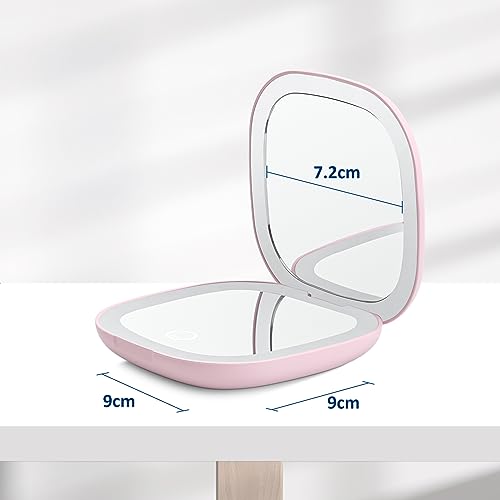 LoQuick Led Specchietto da Borsetta, Specchio da Viaggio Ingrandito 1X 5X,Specchio per Il Trucco Oscurabile,Ricarica Usb Specchio Portatile,Specchio Pieghevole Quadrato,Regali per Ragazze