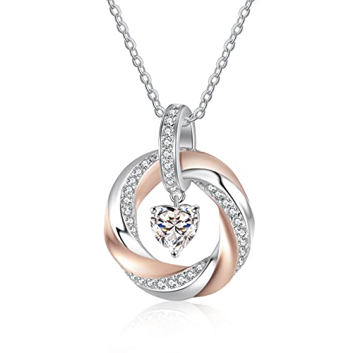 Lorajewel Collana Donna Anello Russo Ciondolo con Cuore Zirkonia in Oro Rosa in Sterling Argento 925 Gioielli Donna Regalo Originale per Madre e Figlia Moglie Fidanzata Compleanno
