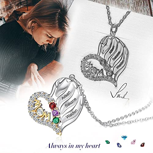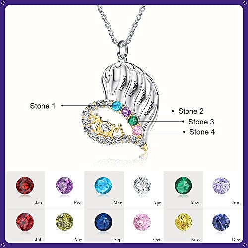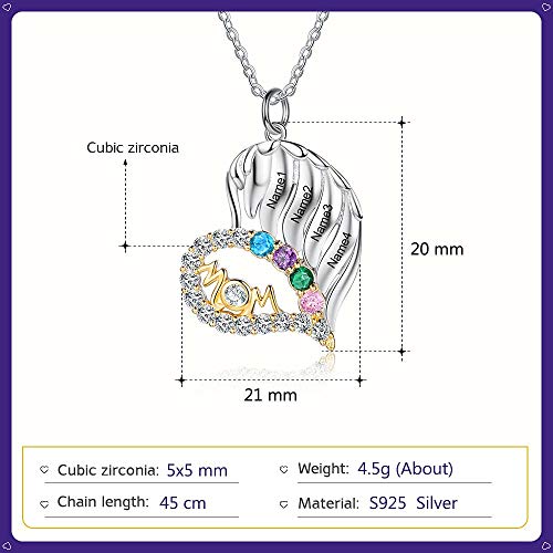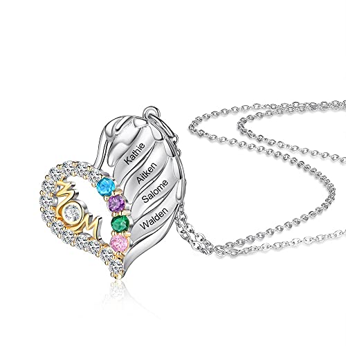 Lorajewel Collana Mamma Argento Sterline 925 Mom Ciondolo Cuore Donna in Oro con 4 Birthstone per 40th Compleanno della Mamma/Festa della Mamma con Elegante Confezione Regalo