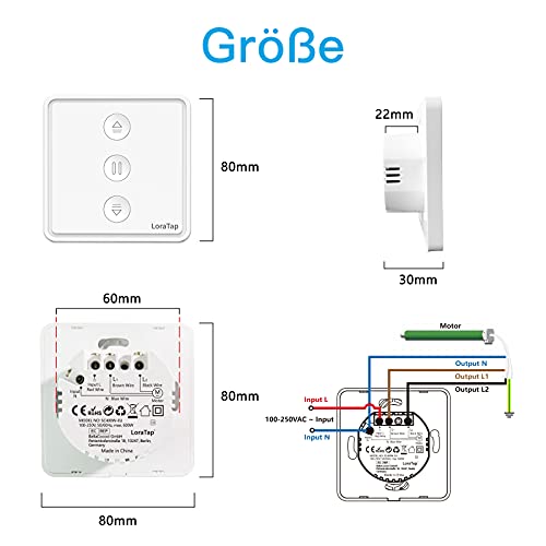 Controllo in gruppo: è possibile controllare fino a 20 interruttori in gruppo e condividere con la famiglia con un clic di smartlife. LoraTap è un'azienda specializzata nella ricerca, sviluppo e produzione di interruttori radio e interruttori intelligenti da oltre 10 anni. Tutti i prodotti LoraTap sono certificati secondo le norme europee. Nota: si prega di confermare che il motore della tapparella ha almeno 3 fili.