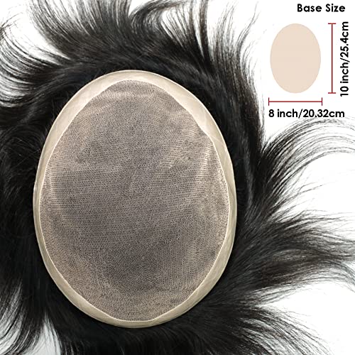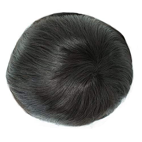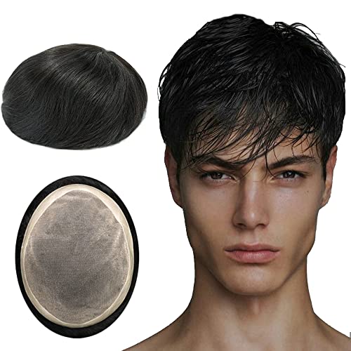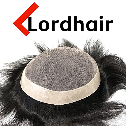 Lordhair Parrucca da uomo, Mono Sistema di Capelli in Pizzo con Sistema di Ricambio Nero per Parrucchino in PU