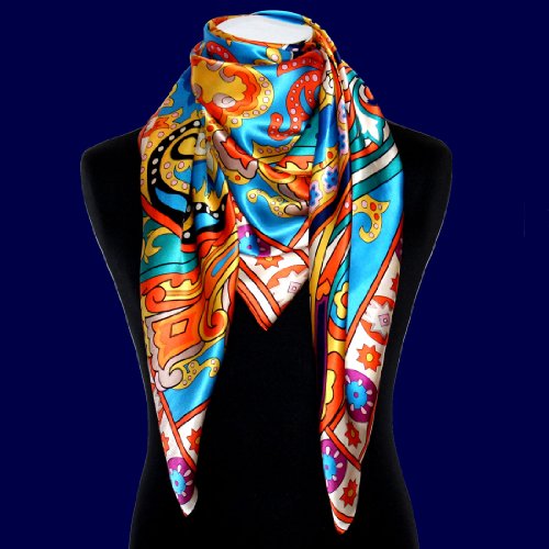 Lorenzo Cana Asciugamano di seta da donna in 100% seta barocco con motivo cachemire panno sciarpa di marca, Colore: arancione., 110 x 110 cm