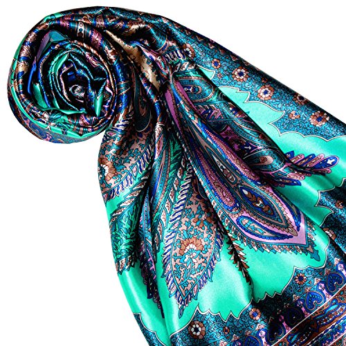 Lorenzo Cana Marchio di stoffa di seta 100% seta con ornamento Turchese modello Rosa blu Panno donna 100 cm x 100 cm 89008