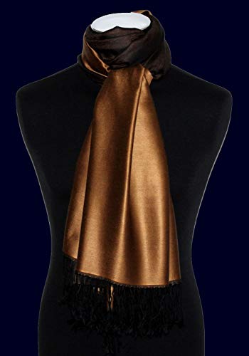 Lorenzo Cana Pashmina Sciarpa da donna reversibile 70% seta 30% viscosa spago 70 x 190 cm bicolore. Caffè/Nero 70 x 190 cm