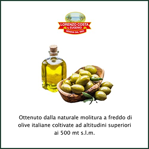 PRODOTTO IN ITALIA: L'olio extravergine d'oliva filtrato Costa è un olio prodotto esclusivamente con olive italiane. Raccolte e frante esclusivamente mediante procedimenti meccanici a freddo. Ottenuto da olive italiane coltivate ad altitudini superiori ai 500m s.l.m.