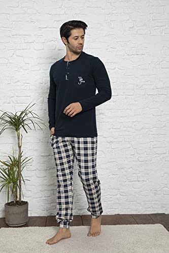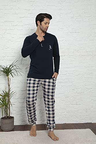 LOREZA ® Pigiama da Uomo Pigiama Set Pigiama in Cotone Casacca da Notte a Manica Lunga - 4XL - M-93907-Blu