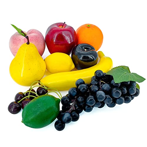 Lorigun Set di frutti artificiali per la decorazione di oggetti finti di frutta, 10 tipi di frutta (totale 12 pezzi)