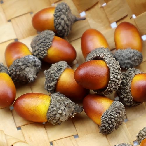 Lorigun 50 pezzi di ghiande artificiali con berretto di ghianda naturale ghianda finta per la decorazione di casa, decorazioni natalizie, decorazioni autunnali(marrone finto noce)