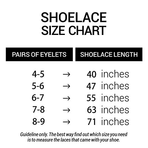 2 paia.NEED: Rimuovi il laccio corrente dalla scarpa, misuralo da punta a punta, questa è la lunghezza per il nuovo merletto. Tieni presente di aggiungere o sottrarre i tuoi nuovi lacci se i tuoi vecchi lacci sono troppo lunghi o troppo corti