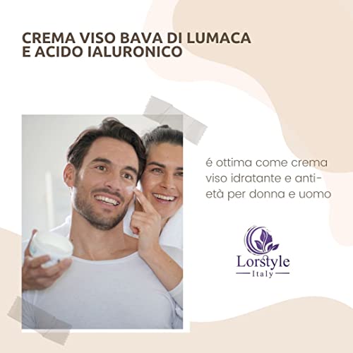 Lorstyle Crema Viso Bava di Lumaca e Acido Ialuronico effetto Antirughe Idratante Illuminante Antiage Nutriente e Rigenerante, Donna/Uomo - Made in Italy