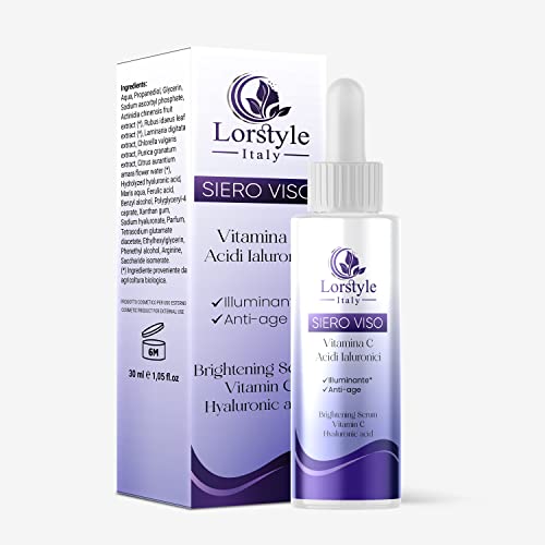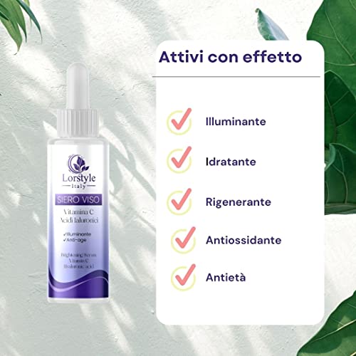 Lorstyle Siero alla Vitamina C e Acido Ialuronico e Acido Ferulico - attivi con effetto Illuminante Idratante Anti-age Antimacchia per Viso e Collo per Donna / Uomo