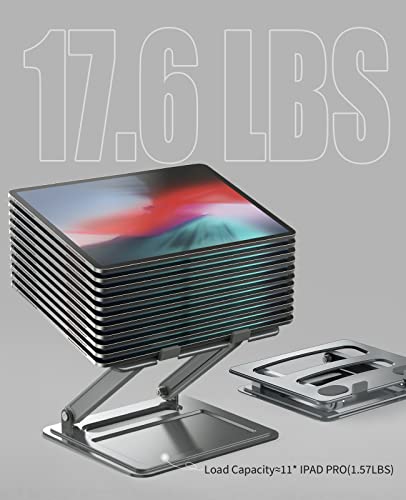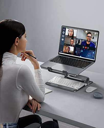 Robusto supporto in Metallo: Supporto per laptop realizzato in metallo di alta qualità, che consente di sopportare fino a 8 kg di peso, perfetto per laptop e tablet da 11-17 pollici, offre una maggiore stabilità e adattabilità