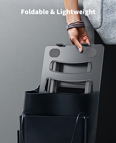 Pieghevole e leggero: Questo supporto per laptop pesa 0,8 kg. Il design pieghevole consente di risparmiare spazio. Inoltre, è dotato di una piastra portaoggetti per riporre la tua tastiera wireless, telefono, mouse wireless, ecc. Si adatta perfettamente alla casa e all'ufficio