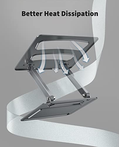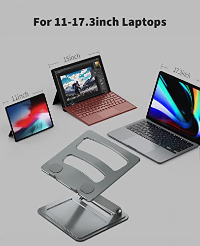 LORYERGO - Supporto regolabile per laptop da 10"-17" con design ergonomico, regolabile a diverse altezze, apertura per evitare il surriscaldamento, peso massimo 8 kg, per casa o ufficio (Grigio)
