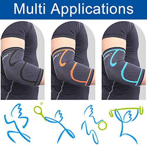 [APPLICAZIONI] - Ti sentirai più sicuro e sicuro con i nostri supporti a gomito, rafforza la tua capacità di muoverti più velocemente, diventare più forte e allenarti più duramente. È progettato per attività intensive come ciclismo, corsa, escursionismo, pallacanestro, calcio, tennis, baseball, sollevamento pesi, palestra, allenamento fitness e altro ancora.