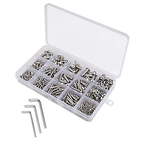 Loscrew 500 pezzi M3 M4 M5 in acciaio inox vite e dado kit testa a testa esagonale bulloni viti con kit assortimento di dadi + chiave (3 pezzi)