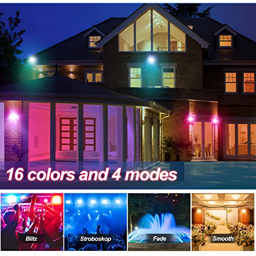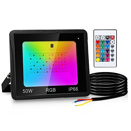 Lospitch RGB Faretto LED 50W dimmerabile, telecomando da esterno, faretti da esterni LED RGB impermeabile IP66, 16 colori 4 modalità, RGB proiettore per alberi, luce d'atmosfera con cambio colore