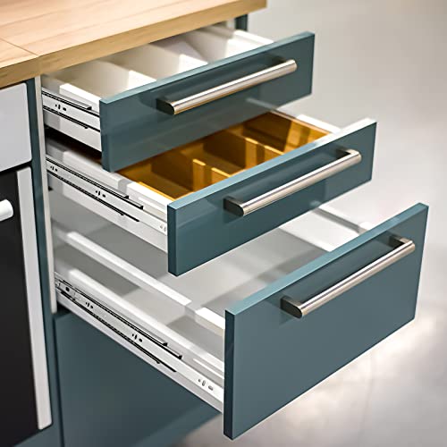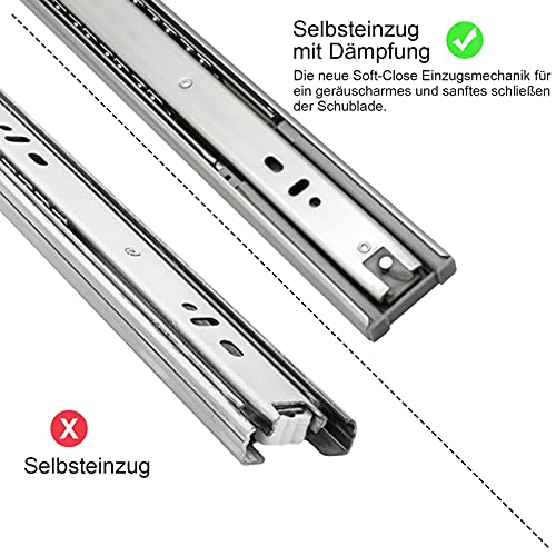 Guide per cassetti in tre parti: 1 paio (2 pezzi), lunghezza della guida: 400 mm, guide a estrazione completa: 800 mm, larghezza 45 mm, spessore 1,2 x 1,2 x 1,5 mm, portata fino a 35 kg (per paio). Si prega di misurare il cassetto prima del montaggio e dell'acquisto.