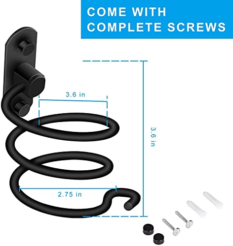 Lostwry 2 Pezzi Supporto per Asciugacapelli da Parete Supporto per Piastra per Capelli in Alluminio Porta Asciugacapelli a Spirale con Viti per Hotel Bagno Soggiorno Barbershop Nero