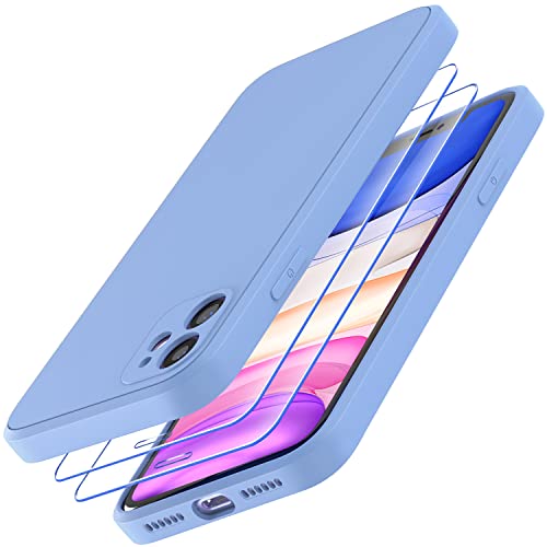 Losvick Cover per iPhone 11, 2 x Pellicola Vetro Temperato, Custodia Sottile Morbida Silicone Liquida con Fodera in Microfibra, Antiurto Anti-Graffio Case per iPhone 11-6.1 Pollici - Blu Chiaro