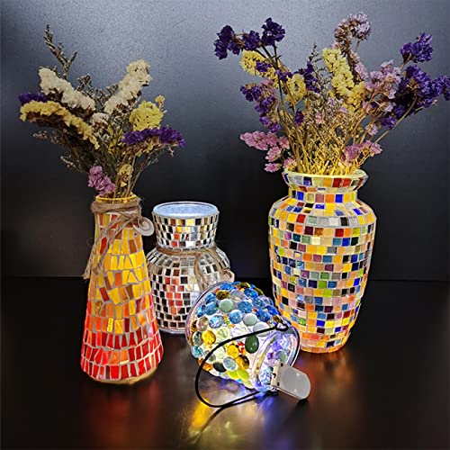 Ampie applicazioni: tessere di mosaico in cristallo glitterato adatte per decorazioni su cornici per foto, piatti, tazze, vasi da fiori, stoviglie, drinkware, lampade da tavolo, trampoli, tavoli e sedute all'aperto, vasi da giardino, ecc. puoi creare diversi modelli di cui hai bisogno per il progetto artigianale.