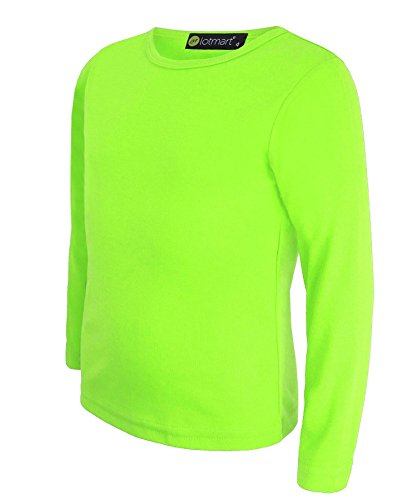 LOTMART Bambini Tinta Unita Basic Top Manica Lunga Ragazze Ragazzi T-Shirt Top Girocollo Uniforme Tee - Giallo Neon, 11-12 Anni