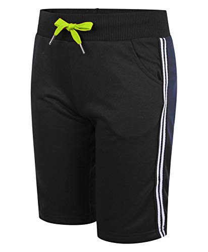 LOTMART - Pantaloncini estivi in jersey con motivo a righe a contrasto Nero 13-14 Anni