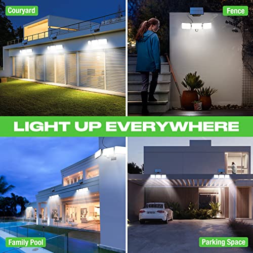 LOTMOS Luce Solare Led Esterno con Sensore di Movimento 224LED/3 Teste Faretto Led da Esterno Solare con Telecomando, IP65 Impermeabile Lampada Solare da Esterno di Illuminazione a 270° da 5m Cavo
