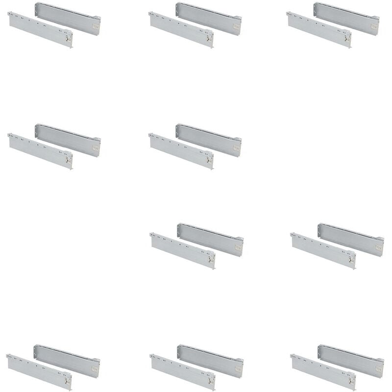 Il kit per cassetto da cucina e bagno Ultrabox è composto da profili lateriali in acciaio con guide a rotella, progettate con finiture verniciate in alluminio . E' la migliore opzione con il miglior rapporto qualità-prezzo per cassetti da cucina e bagno. Ogni kit include tutti gli accesori per il montaggio di un cassetto: profili laterali, set di guide con caduta e agganci anteriori per il frontalino . Necessita di pannelli tagliati a misura per il fondo e la schiena oltre al frontalino del cassetto. Gli aggangi di fissaggio del frontalino permettono la regolazione eccentrica ± 2 mm verticale. Questi agganci sono già montati sul lato della sponda in acciaio. Cassetto di acciaio composto da due lati e guide a rullo con chiusura a caduta. Altezza del profilo 86 mm e profondità 350 mm. Il fondo non necessita meccanizzazione. Capacità di fissaggio migliorata dall'aggancio sul profilo. Si serve di aggancio montato sul profilo. Regolazione eccentrica di ±2 mm in verticale. Portata massima