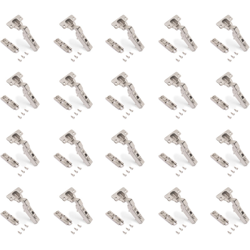 Lotto di 20 cerniere mezzo collo con chiusura soft e Basetta per ante progettate per l'utilizzo nei mobili della casa e dell'ufficio con alta qualità e al miglior prezzo. Le cerniere a scodellino si caratterizzano per il loro pistone ammortizzato che regola la chiusura soft dell'anta. Sono disponibili in mezzo collo con apertura dell'anta a 105°. Basette dritte progettate per fissare le cerniere al modulo. Grazie alle sue dimensioni, la basetta rimane nascosto sotto il braccio della cerniera . Inoltre, è completamente compatibile con la copertura della cerniera in Tecnoplastica. Per la sua istallazione è necessario un foro diametro 35 mm per lo scodellino. E il fissaggio al pannello avviene mediante le viti incluse. Allo stesso tempo è molto facile l'istallazione grazie al sistema automatico di montaggio a clip della cerniera alla basetta. Inoltre entrambi dispongono di vite eccentrica per una regolazione rapida e comoda. Lotto di 20 cerniere mezzo collo con chiusura soft e Basetta.