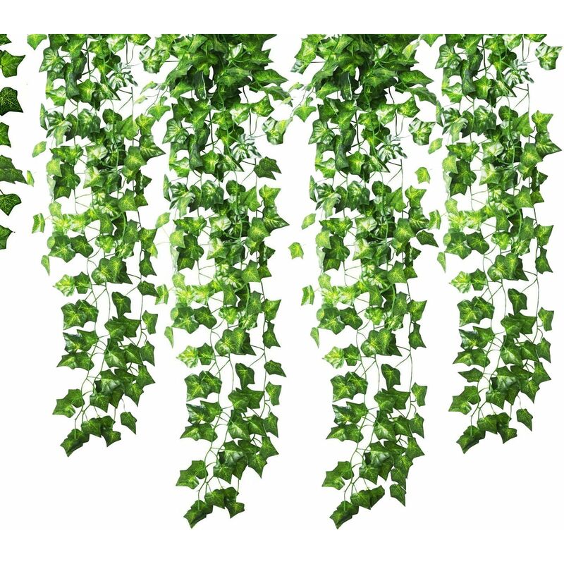 12 * Ghirlande Ivy in totale. Ogni ghirlanda Lierre misura circa 2,10 metri di lunghezza. La foglia è di circa il 3 del 4%. Questa vite finta sospesa è realizzata con fogli di tessuto e rami di plastica metallica, senza manutenzione e resistente, aggiungere un aspetto ricco ed elegante a qualsiasi tipo di decorazione. Può essere utilizzato per un matrimonio, una camera da letto, un giardino, un balcone, una scala, un supporto per swing, centri commerciali, per la decorazione, facile da installare e smontare. Colore: lotto Di 12. Utilizzare queste ghirlande di edera artificiale per decorare il balcone, una