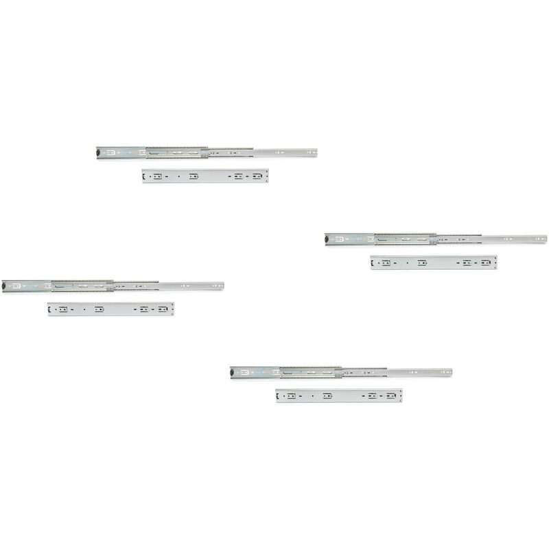 Guide con estrazione totale per cassetti e uno scivolamento morbido e silenzioso grazie ai suoi cuscinetti a sfera di alta qualità. Sono noti, inoltre, per la grande capacità di carico che può arrivare a sopportare fino a 68 kg per cassetto. Il montaggio al cassetto si realizza mediante viti e lo smontaggio con grilletto. Guide a sfere per cassetti di grande portata ed estrazione totale del cassetto. Prodotto in acciaio zincato. Altezza 51 mm e lunghezza 450 mm. Carico massimo a set 68 kg. Ogni lotto include 4 set di guide imballate individualmente. Possiede un grilletto per lo smontaggio della guida. 4 set di guide