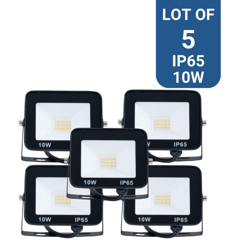 Confezione da 5 faretti LED per esterni dal design compatto e dalla potenza di 10W, con un flusso luminoso di 850 lumen. Con alloggiamento in metallo e diffusore in vetro, adatto per uso esterno IP65. Può essere inclinato e orientato grazie alla staffa in dotazione. Chip LED SMD2835 e driver integrato. 3000K/6000K✔ 230V✔ 10W100x80x30 mmIP65