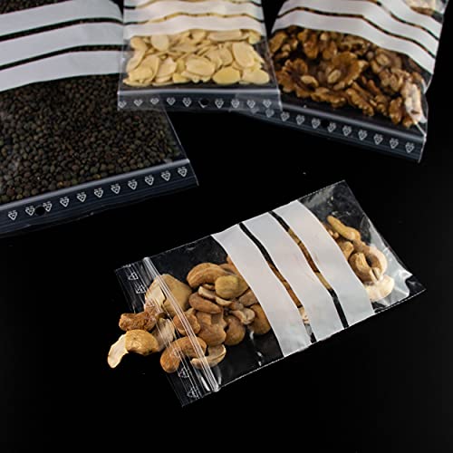 Lotto di 100 sacchetti trasparenti con chiusura a zip - Plastica adatta agli alimenti (8 x 12 strisce bianche)