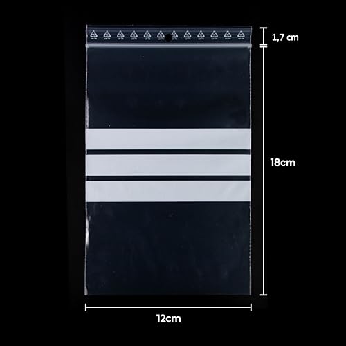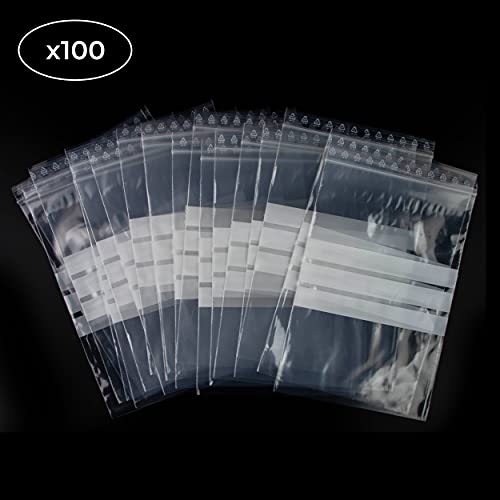 Lotto di 100 sacchetti trasparenti con chiusura a zip - Plastica adatta agli alimenti (12 x 18 cm strisce bianche)