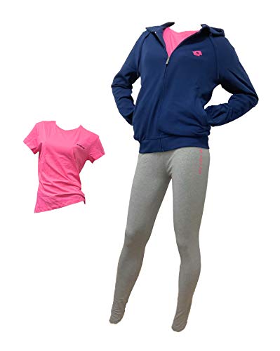 Lotto Tuta Donna Estiva 2 PEZZI + T-SHIRT OMAGGIO Tuta Donna Cotone French Terry Felpa Estiva - Tuta Donna Completa Cotone 4 Stagioni (FELPA BLU-LEGGINGS GRIGIO-T-SHIRT FUXIA, S)
