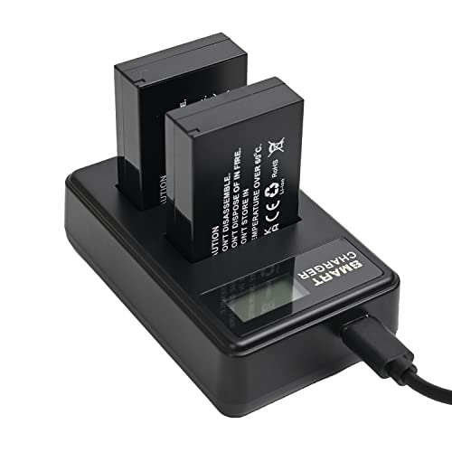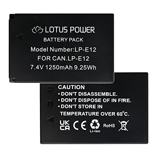 LOTUS POWER Batteria di ricambio LPE12 con Caricabatteria LCD, Batterie LP-E12 e Caricatore a 2 slot per Canon EOS M200 EOS M50 EOS 100D EOS Kiss X7 / PowerShot SX70 HS (2 Batterie e 1 Caricatore)