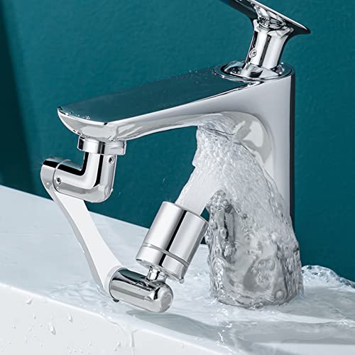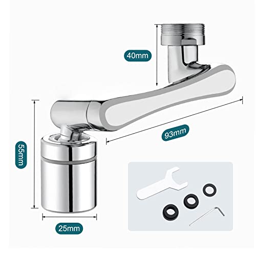 LOTUS POWER Set di rubinetti per braccio robotico girevole 1080°+360° con filettatura interna da 22 mm e filettatura esterna da 24 mm, rubinetto aeratore universale argento con chiavi per cucina/bagno