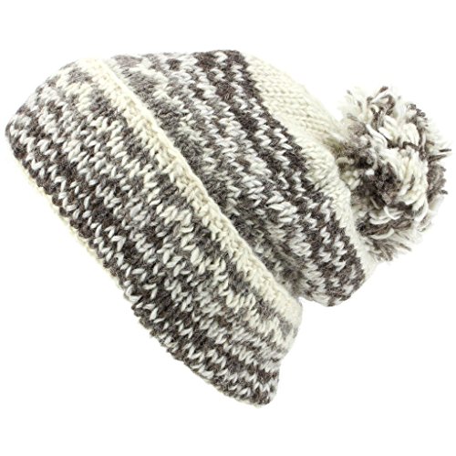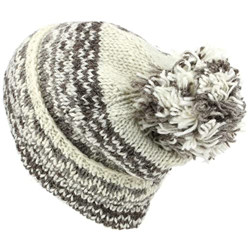 LOUDelephant Chunky Maglia di Lana Largo Berretto Inclinato Cappello Ponpon - Bianco Latte, One Size