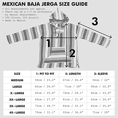 LOUDelephant Felpa con cappuccio messicana riciclata Baja Jerga True Sizing M-4XL, Mix grigio., XXL