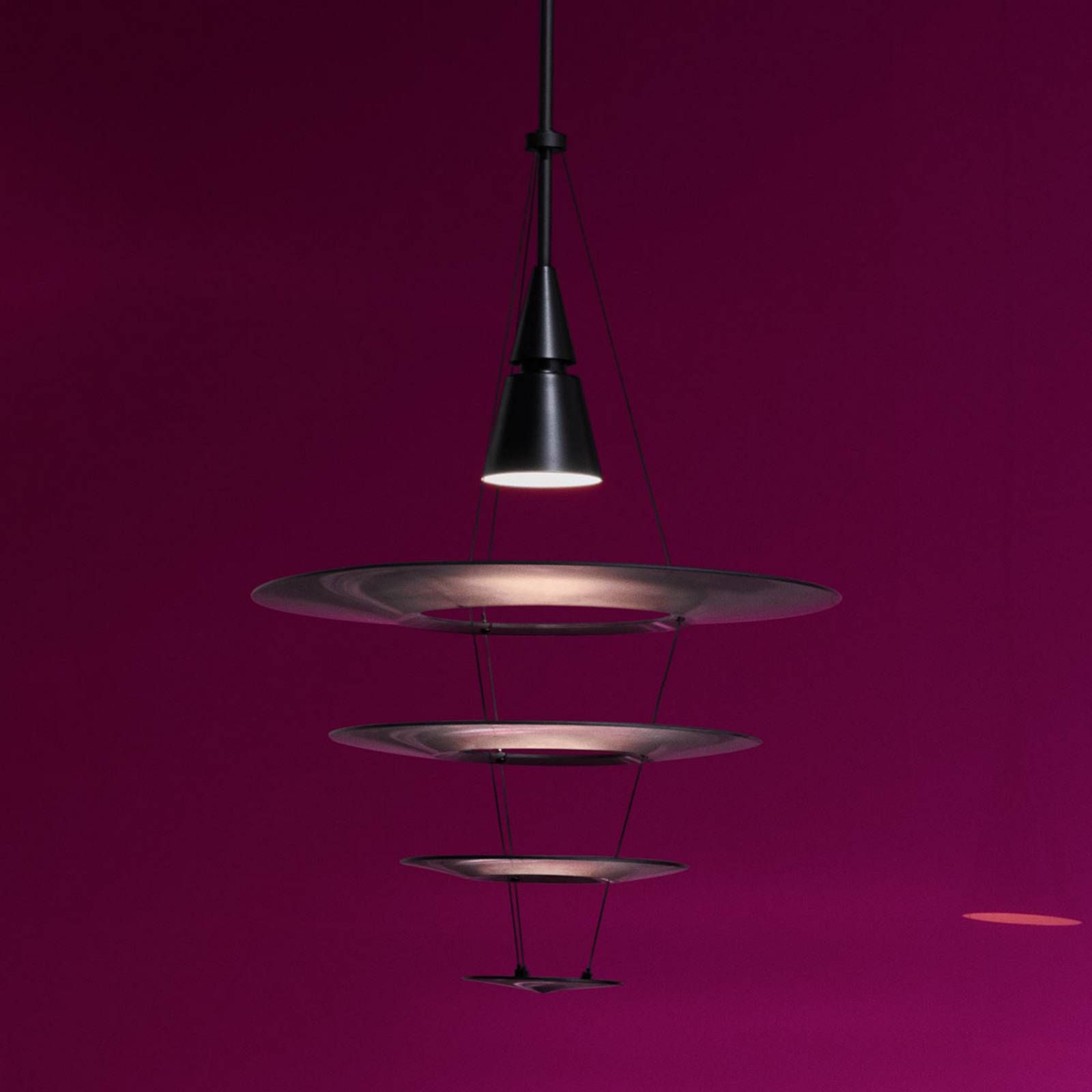 Lampada a sospensione Enigma Black 425 di profilo raffinato La lampada a sospensione Enigma Black 425 è firmata dal designer giapponese Shoichi Uchiyama. Il suo effetto vive dei contrasti di chiaroscuro formati dai dischi che filtrano la luce componendo un profilo molto raffinato. Enigma Black diffonde una luminosità morbida sul piano sottostante mettendolo in luce con omogeneità. Si presta anche all'illuminazione generale di un ambiente. I dischi che compongono il paralume sono satinati in alto per una luce diffusa e lucidi in basso per rifletterla nel migliore dei modi. Shoichi Uchiyama crea lampade principalmente con un effetto di luce indiretta e senza abbagliamenti. Per il suo design ha già vinto il premio iF Award in Germania e Good Design Award in Giappone. La società Louis Poulsen, fondata nel 1874, lavora seguendo il principio del design scandinavo "la forma segue la funzione". Il suo assortimento di prodotti nasce da collaborazioni con architetti contemporanei e del passato, ad esempio Poul Henningsen, Arne Jacobsen, Louise Campbell, Alfred Homann, Oki Sato e Verner Panton.