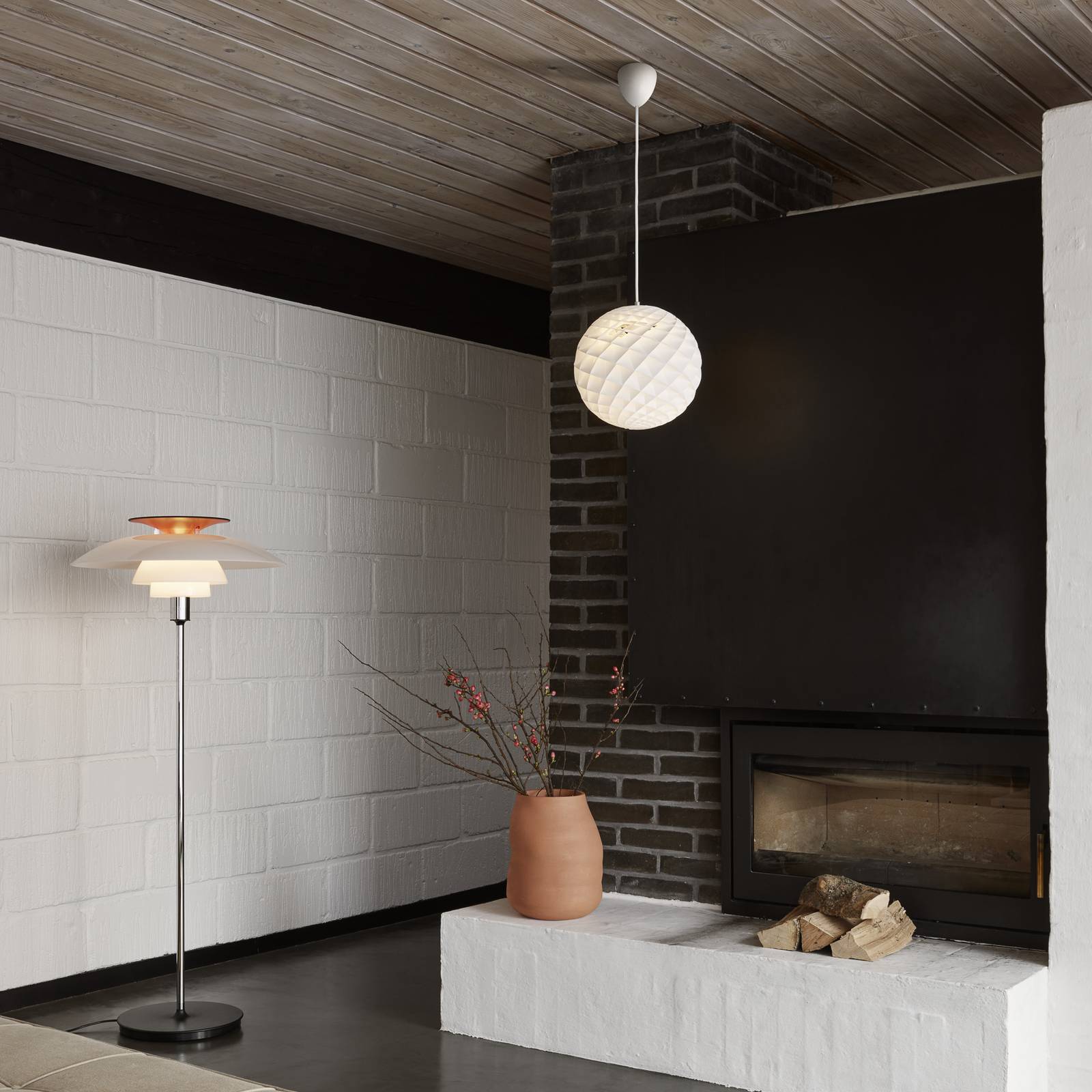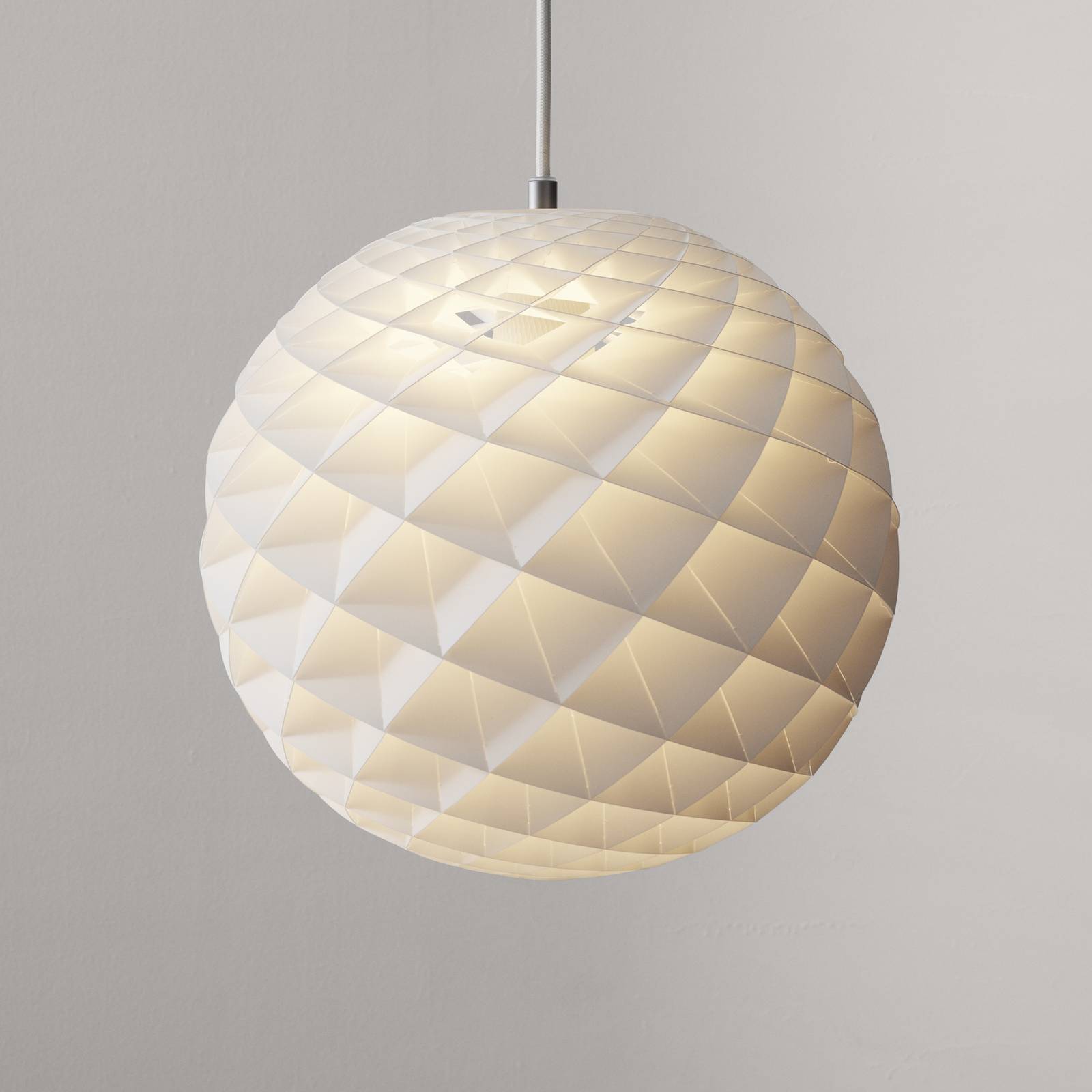 Lampada a sospensione sferica Patera con motivo a diamanteLa lampada a sospensione Patera emette una luce non abbagliante che viene riflessa dalle piccole celle a forma di diamante che la compongono. La struttura garantisce che la luce venga irradiata senza abbagliare l'ambiente circostante da un angolo di visione di 45°. Allo stesso tempo, l'apparecchio emette una luce verso il basso e un fascio di luce verso l'alto che illumina il soffitto e immerge l'ambiente circostante in un'atmosfera piacevole. Ogni singola cella dà forma alla luce. Si creano transizioni fluide tra luce diretta e riflessa, che sottolineano in modo particolare la notevole luminosità dell'apparecchio sferico.La lampada a sospensione è stata introdotta da Øivind Slaatto nel 2015. La lampada a sospensione è stata introdotta da Øivind Slaatto nel 2015 e rappresenta un'interpretazione moderna del lampadario classico, che arricchisce gli ambienti moderni con un punto focale scintillante e un'illuminazione morbida e dinamica. La sua luce non abbagliante, emessa con un angolo di 360°, è il risultato di un design sofisticato: celle posizionate in modo diverso immergono la stanza in una luce naturale e lusinghiera. Da ogni angolazione, la struttura basata sulla sequenza di Fibonacci crea sempre una nuova impressione. Patera è un'aggiunta straordinaria a spazi moderni o tradizionali, aperti a una nuova interpretazione di un concetto classico.