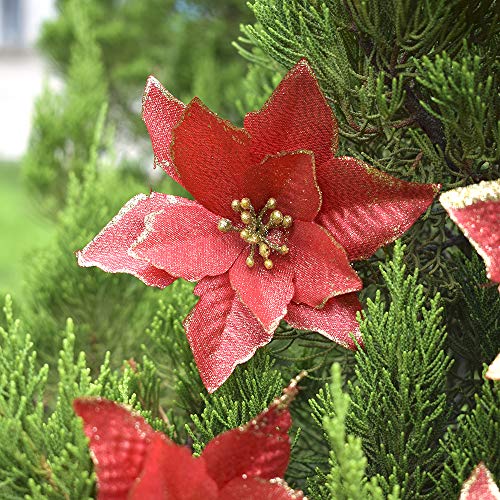 LouisaYork, fiori di Natale glitterati, 10 pezzi, fiori decorativi per albero di Natale, decorazione per albero di Natale, ornamenti per feste di nozze, Seta, Rosso, 10*13cm